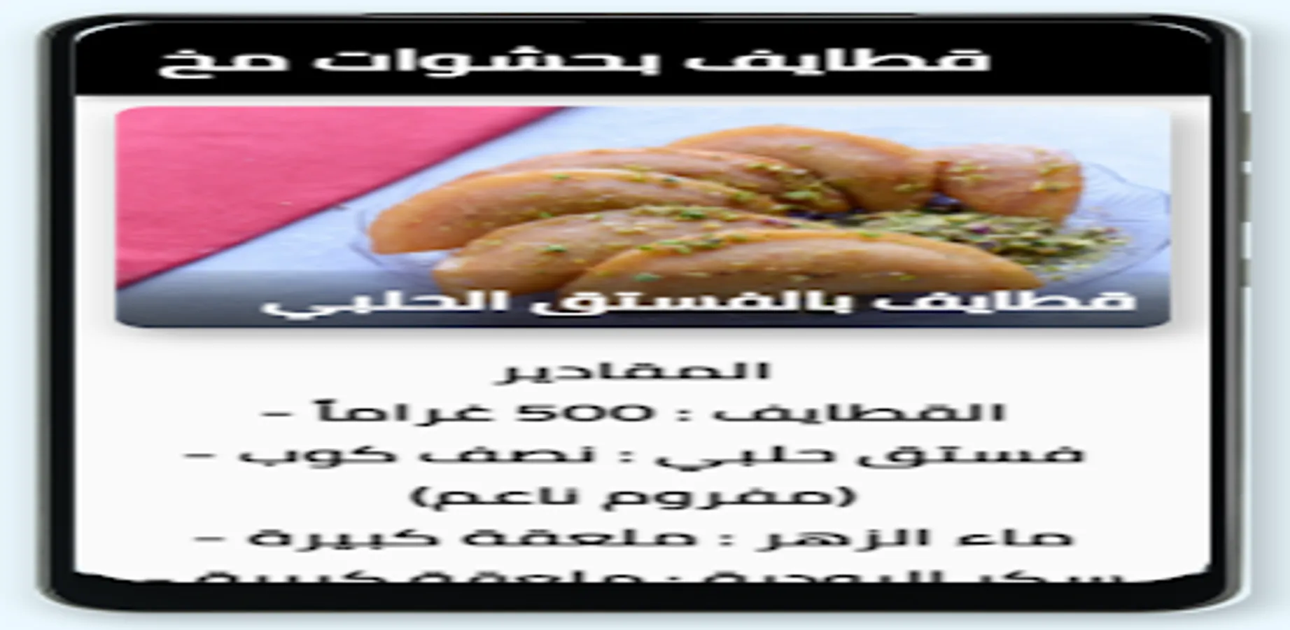 The application contains the types of qatayef, its various flavors, and pictures attached to it