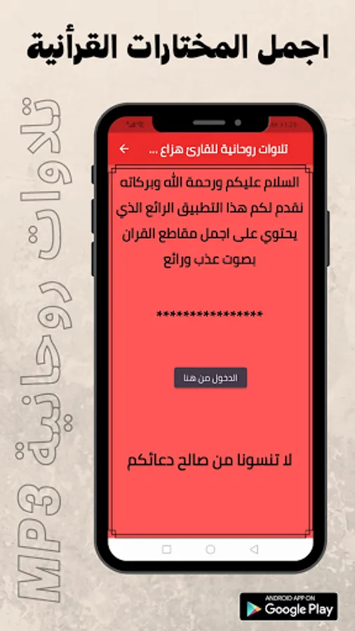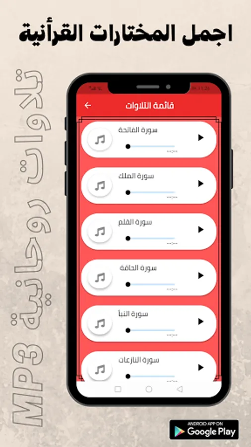 The application allows you to hear all the recitations of and you can easily listen to all the surahs in the Quran via your phone or tablet, and the application is free and is also available for Android phones in the store.