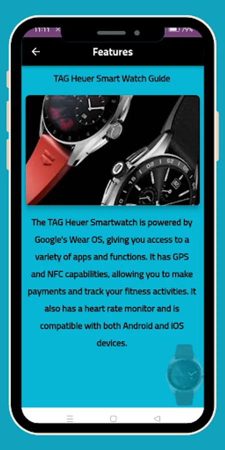TAG Heuer Smart Watch app is just a guide app, it is not an official app, or anything related to the Device company. TAG Heuer Smart Watch app is just a helping-based app to help you with your Device and before you buy it. The information we provide from various trusted sources