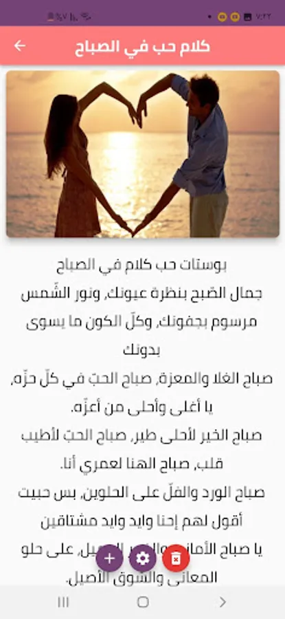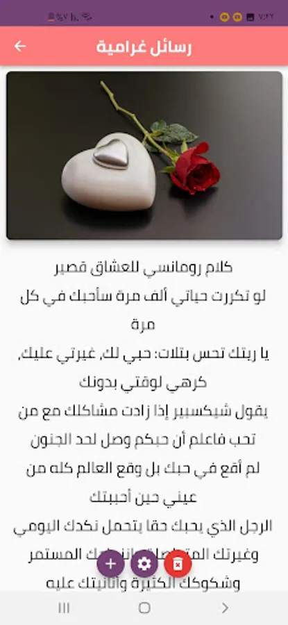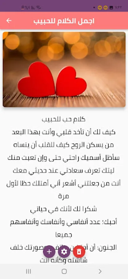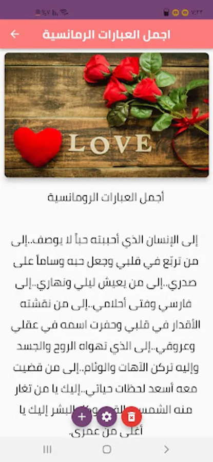 2. Romantic poems: The application contains a wonderful collection of romantic poems that flow smoothly from your heart to the heart of your partner, and make him feel the deep love that you have for him.