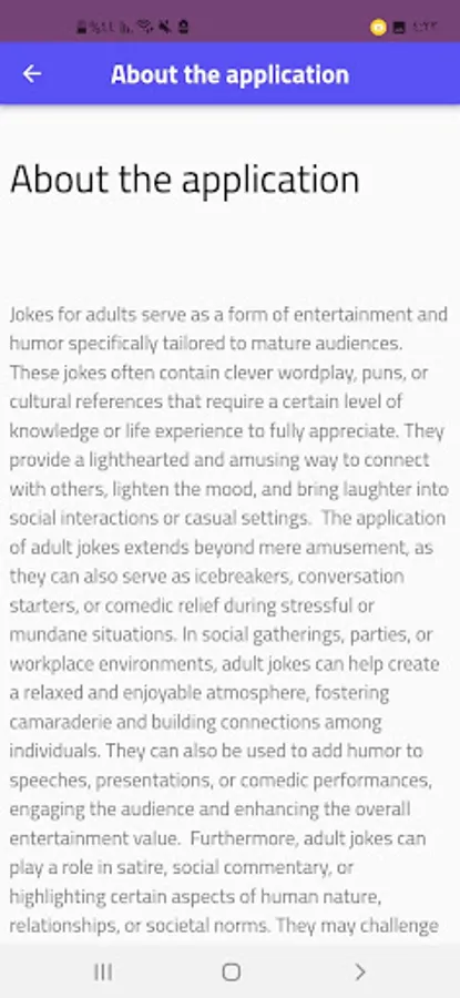 Joke of the Day is the perfect companion for anyone seeking a daily dose of humor. Whether you're looking to brighten your mornings, share a laugh with friends, or simply enjoy a lighthearted moment during the day, this app will keep you chuckling and smiling wherever you go. Get ready to experience the joy of laughter with Joke of the Day!