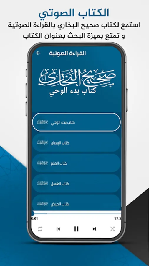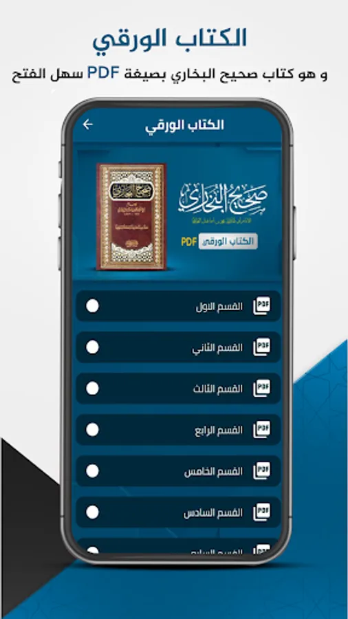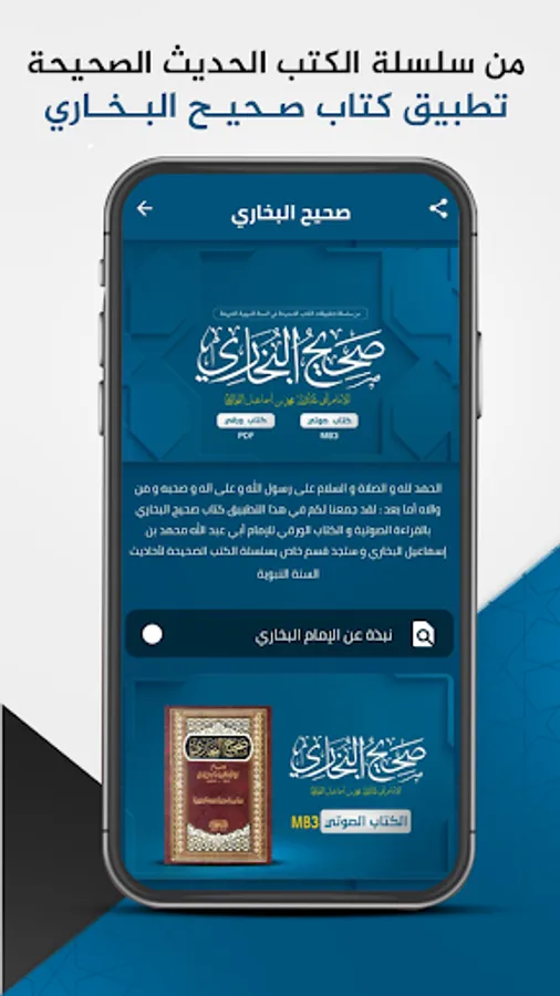 The Sahih Al-Bukhari application contains the Sahih Al-Bukhari book pdf and the Sahih Al-Bukhari book mb3, i.e. with audio reading and paper book