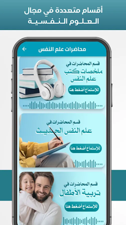 3- Psychology in raising children: It is concerned with understanding and analyzing the behavior and psychological development of children. The application enhances the knowledge and skills necessary to raise children properly, and provides tips and advice that help parents and educators in developing children's abilities and enhancing their mental health.