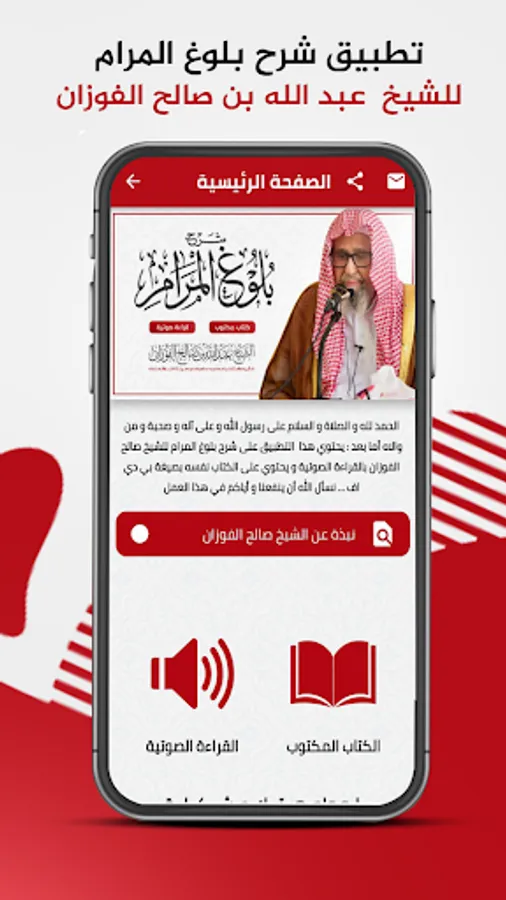 The application contains the Al-Alam grant in explaining the attainment of the Maram in the voice of Sheikh Saleh Al-Fawzan, in addition to the book itself "Buluj Al-Maram pdf"