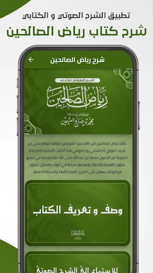 An application that contains about 200 audio files explaining Riyad al-Salihin from the words of the Master of the Messengers by Sheikh Saleh bin Uthaymeen and its author, Imam Yahya bin Sharaf al-Nawawi al-Dimashqi. In this book, the authentic hadiths narrated from the Messenger Muhammad bin Abdullah, may God’s prayers and peace be upon him, are collected in all matters of faith. and life, and presents it in sections and chapters, so that it is easy for the reader to return to and benefit from.