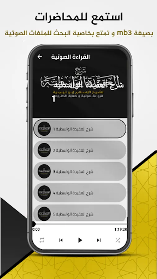 The first section is the audio reading “Audiobook” to explain the middle doctrine of Ibn Taymiyyah