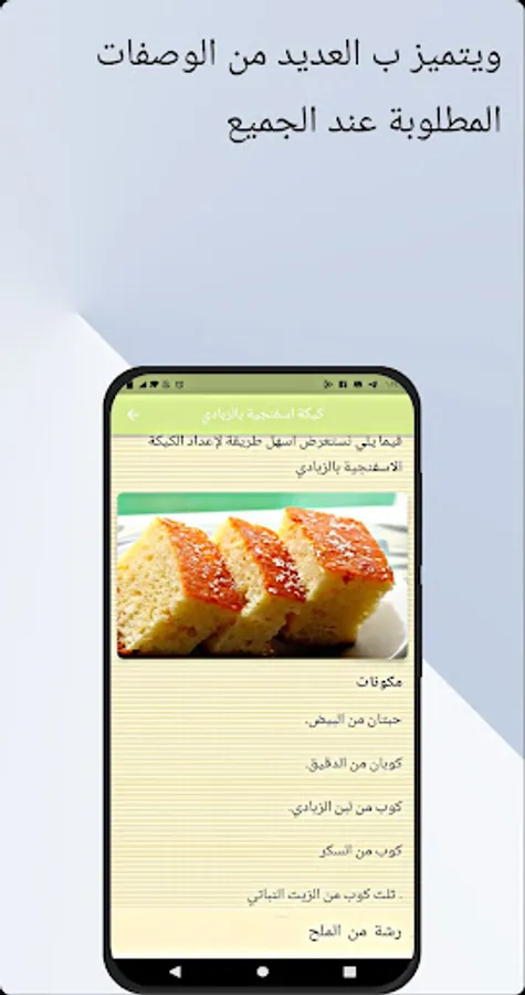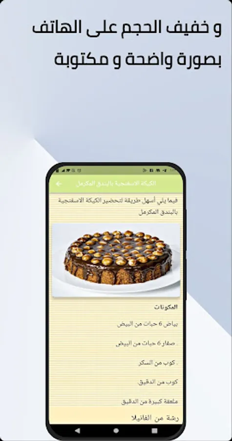 There is no need to worry anymore with the sponge cake application, where you can now find your recipe with ease, comfort and high mastery with the sponge cake application, it makes your family members dispense with their requests in the shops to sell cake if you download the sponge cake application, and we also offer many types of cake Which is a sponge cake, for example, a chocolate sponge cake, a sponge cake with jam, a sponge cake with fruits. It is the delicious and favorite types of sponge cake for all of us and adults and children request it from us. You can follow the recipe, save it and send it to your friends and loved ones and create together, download the sponge cake application, and please rate us.