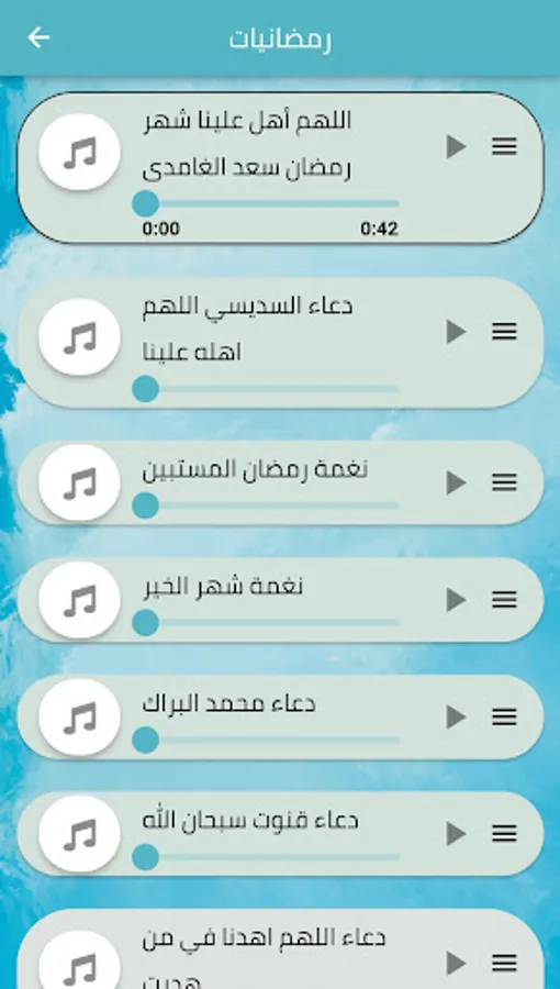 It also contains Islamic ringing tones on supplications such as the supplication for entering the month of Ramadan, the supplication for tendon in Ramadan, and the supplication for qunoot in Ramadan