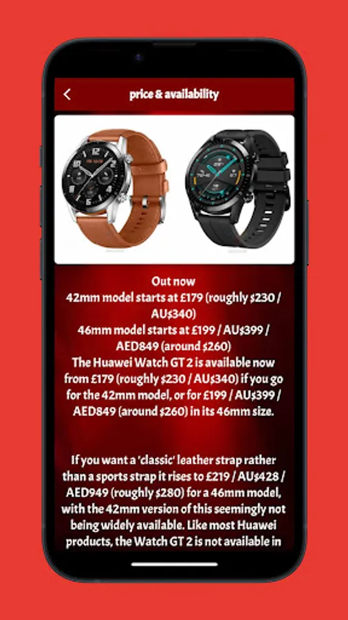 The application Huawei WATCH GT 2 Guide provides you with many information for Huawei WATCH GT 2 Guide