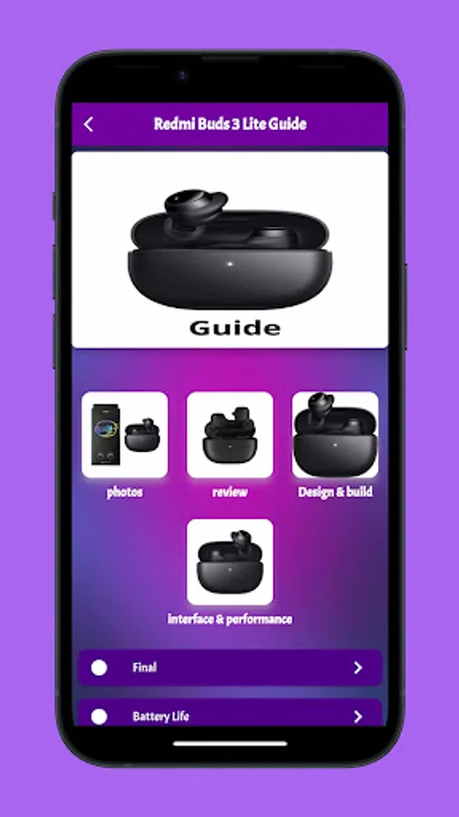 The application Redmi Buds 3 Lite Guide provides you with many information for Redmi Buds 3 Lite Guide