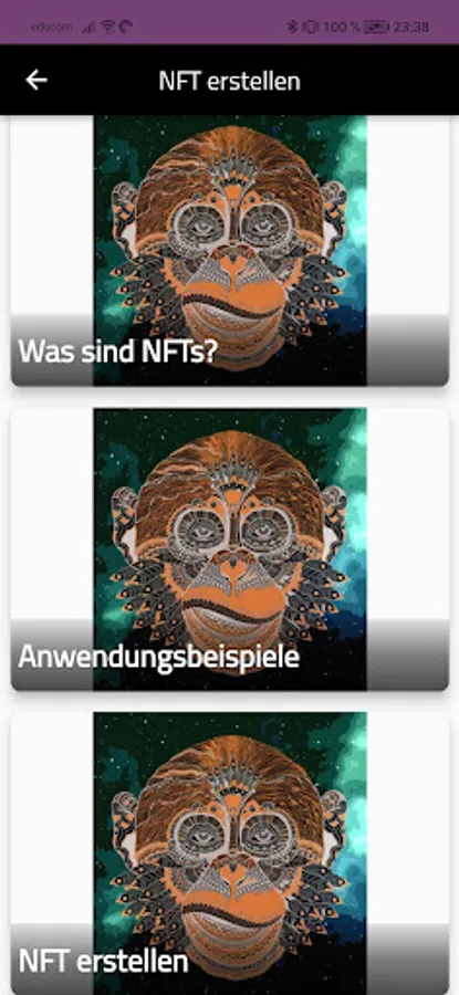 Learn everything you need to know about NFTs in this app. How can I create NFT, what are NFTs and how can I make money with them?