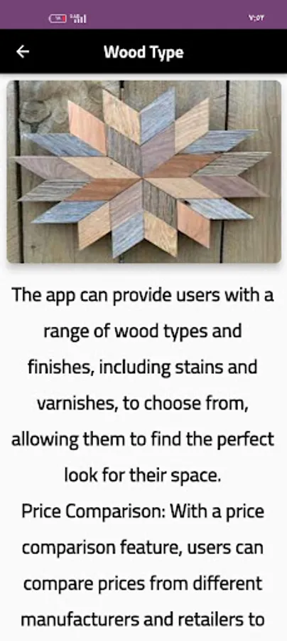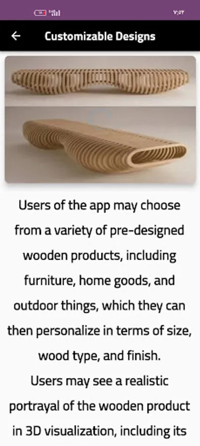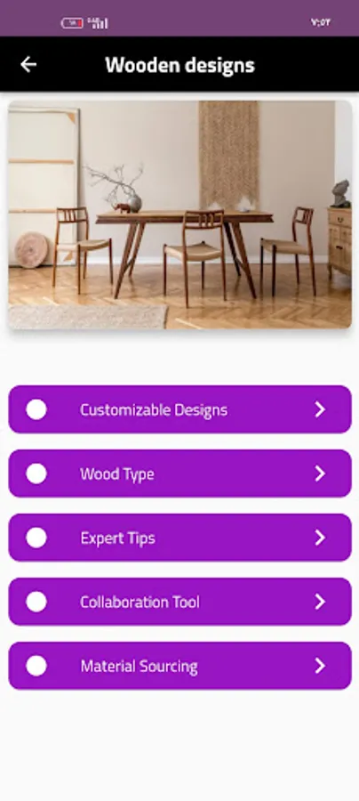 In general, "Wooden Designs" is an excellent tool for anyone interested in integrating wooden furniture into his home or office. The application provides a wide range of design ideas, a 3D visualization tool, expert advice and tips on wood furniture care and maintenance. His interface makes easy to use and a comprehensive designs exhibition of it is an ideal supplier for anyone looking for inspiration and guidance in creating a beautiful and practical living space.