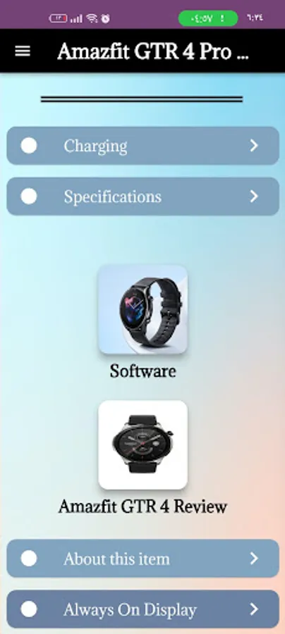 Content of Amazfit GTR 4 Pro Guide Guide app :-