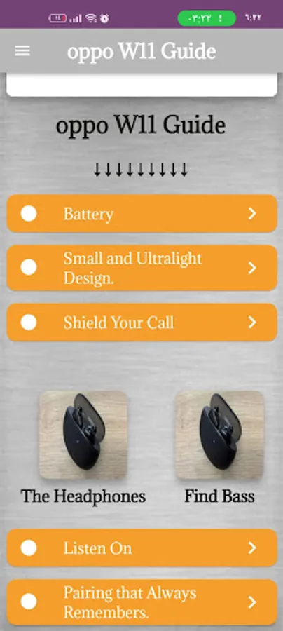 Content of Oppo W11 Guide app :-