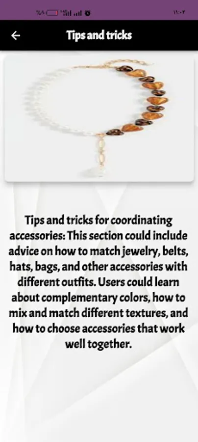 Overall, the 'Coordinating Accessories' app is a valuable tool for people who want to coordinate their accessories in an attractive and well-coordinated manner, and helps them choose the right accessories for their personal looks and lifestyles. The application provides an enjoyable and effective experience for users and helps them achieve the results they desire with ease