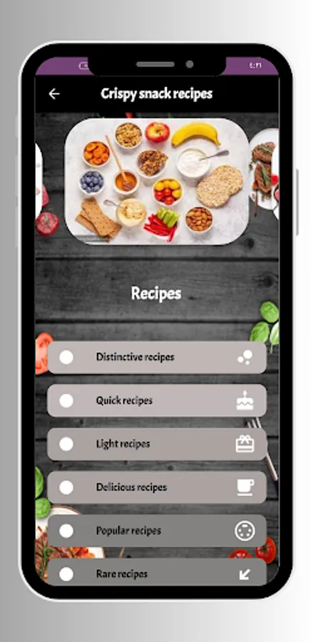 Comprehensive information: The application includes comprehensive information about Crispy snack recipes