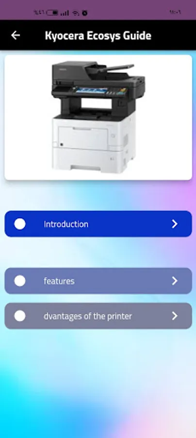 - Kyocera Ecosys Guide app beautiful appearance, decent and comfortable to the eye.