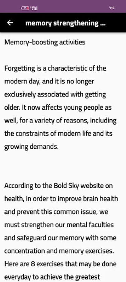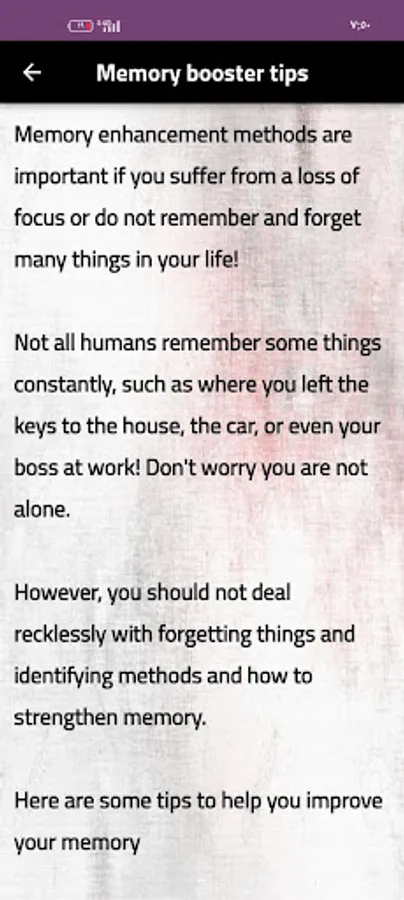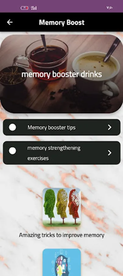 Memory improvement exercises is an app that provides tips to get improve your concentration.