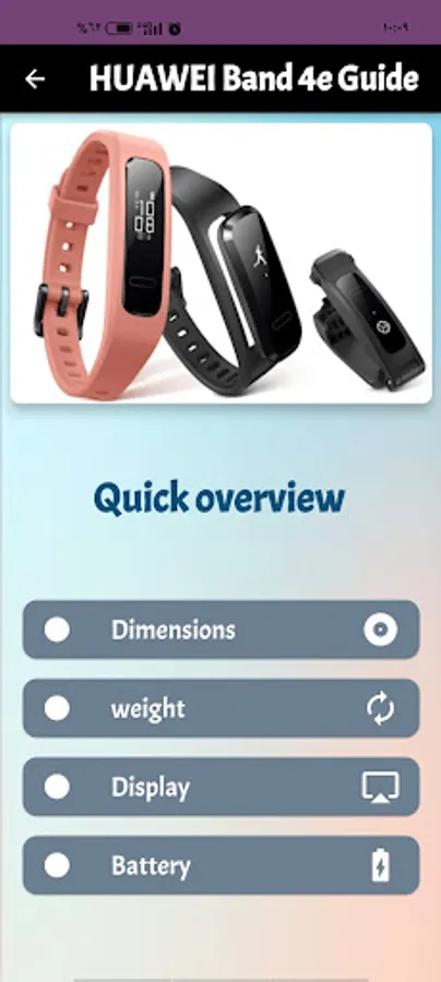 HUAWEI Band 4e Guide is a review app that will give you an idea of how HUAWEI Band 4e Guide works.