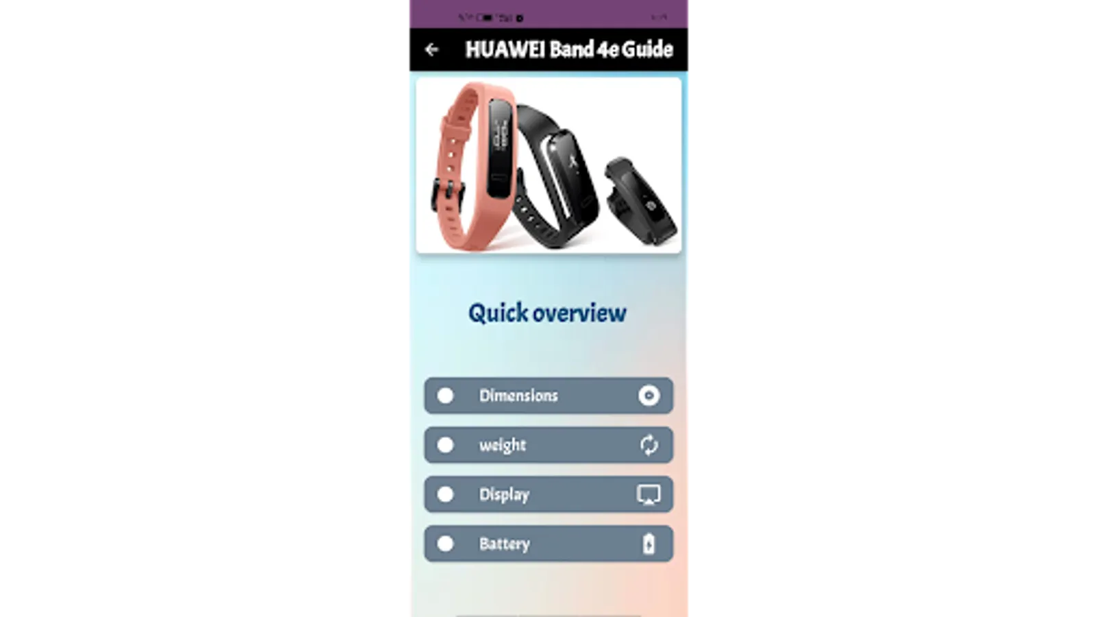 HUAWEI Band 4e Guide App tells you all information and details you are looking for about HUAWEI Band 4e Guide ,
