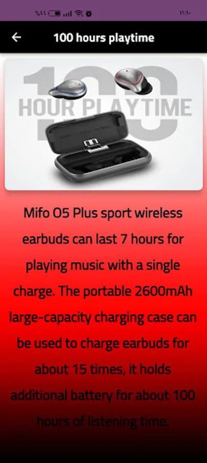 Within Mifo O5 Plus Gen guide The earbuds provide 6 hours of movies or games or 3 hours of talk. The included stylish clamshell charging case provides 470mAh of power for up to an additional 22 hours. Perfect for hiking, long weekend trips or business travel. Charge with included USB Type-C cable or any Qi wireless charging pad and provides 3 hours of playback after charging for 10 minutes.