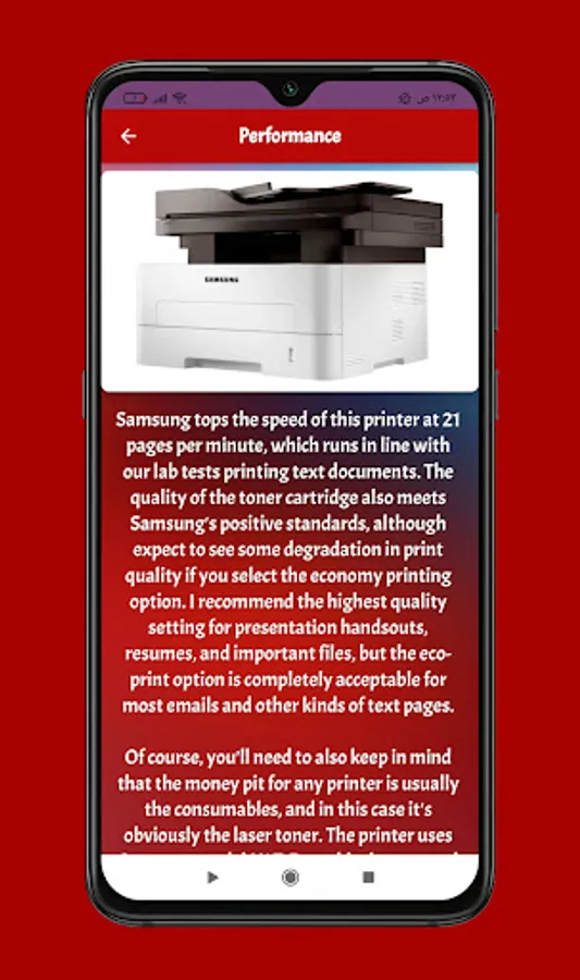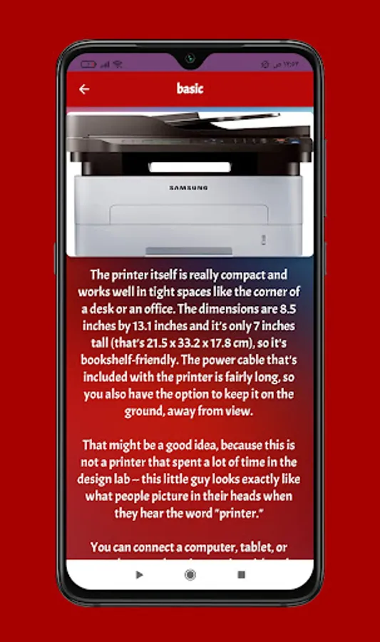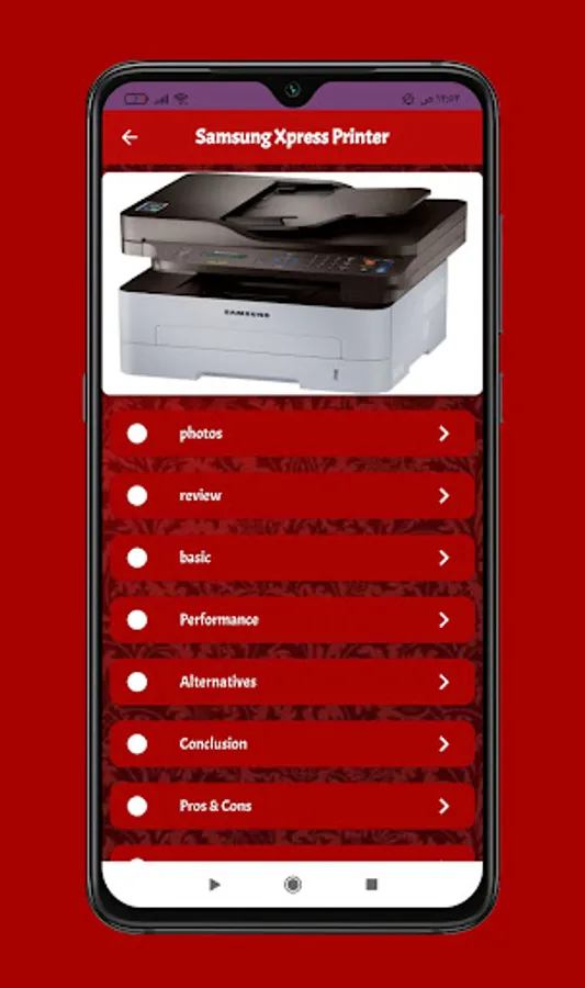 In Samsung Xpress Printer app we have supported several content sections which will now let you more information about Samsung Xpress Printer