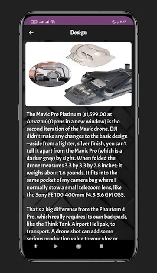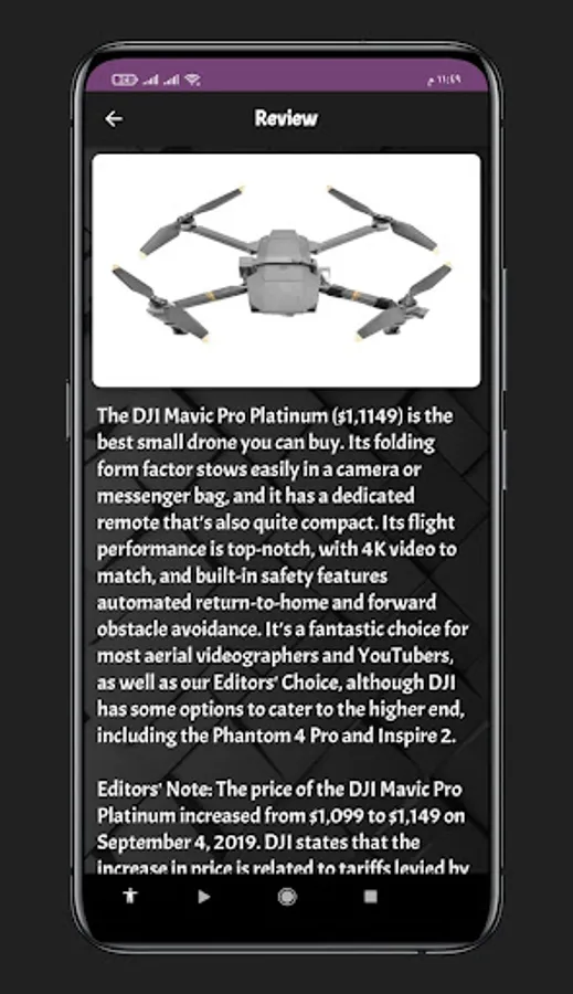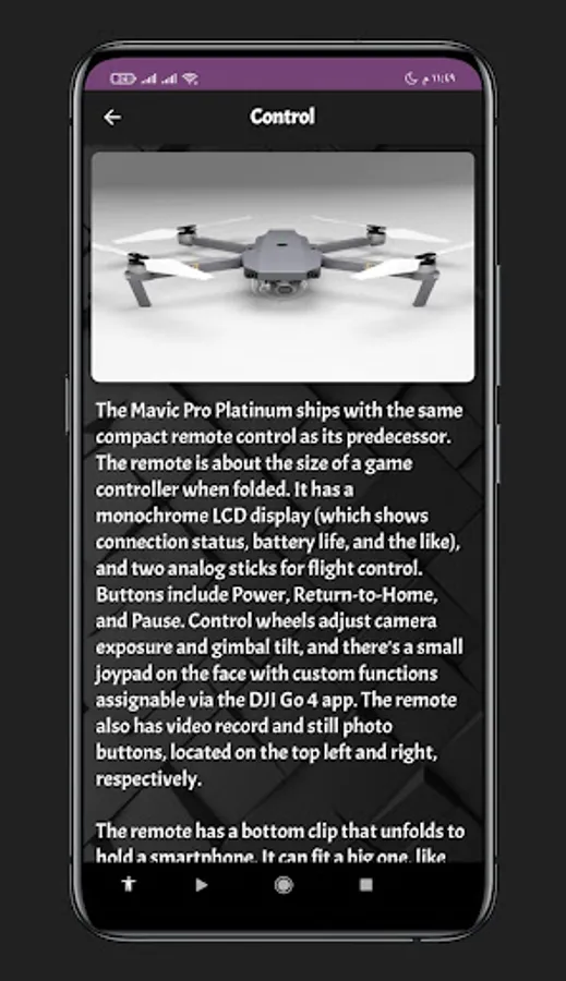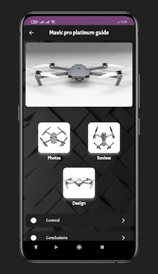 An application mavic pro platinum guide that gives you information