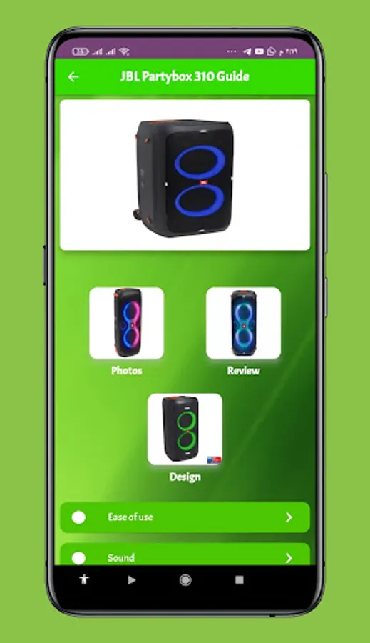 The application JBL Partybox 310 Guide provides you with many information for JBL Partybox 310 Guide