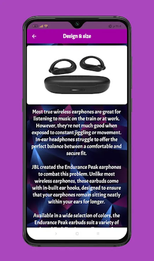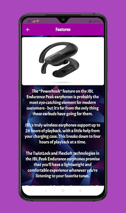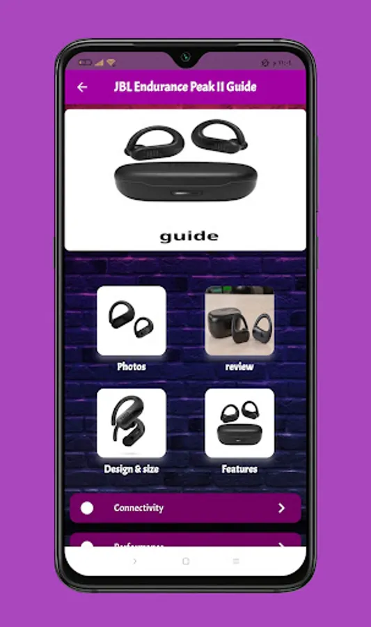 The application JBL Endurance Peak II Guide provides you with many information for JBL Endurance Peak II Guide