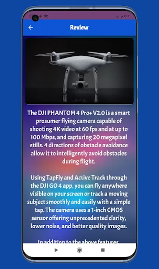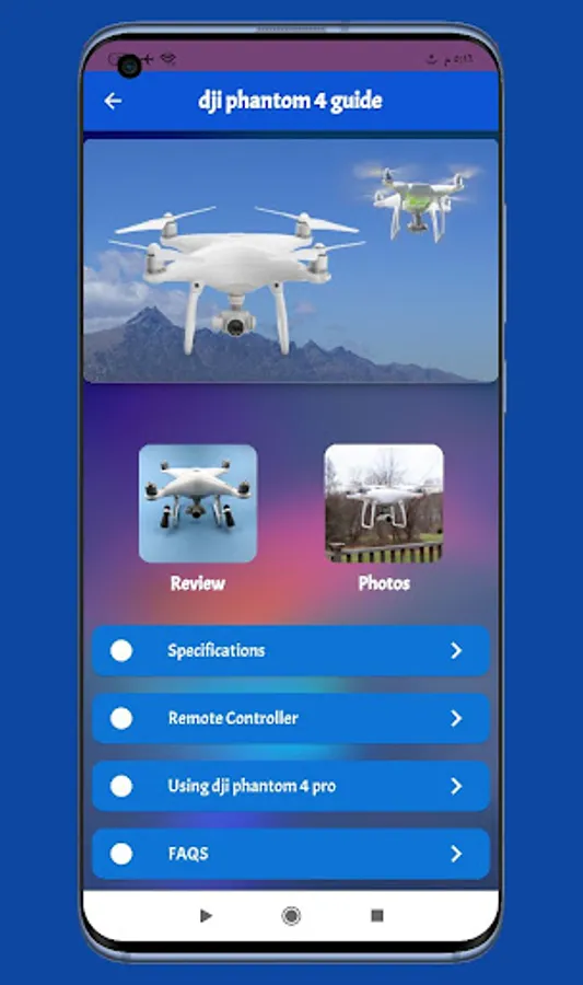 An application dji phantom 4 pro guide that gives you information about dji phantom 4 pro guide