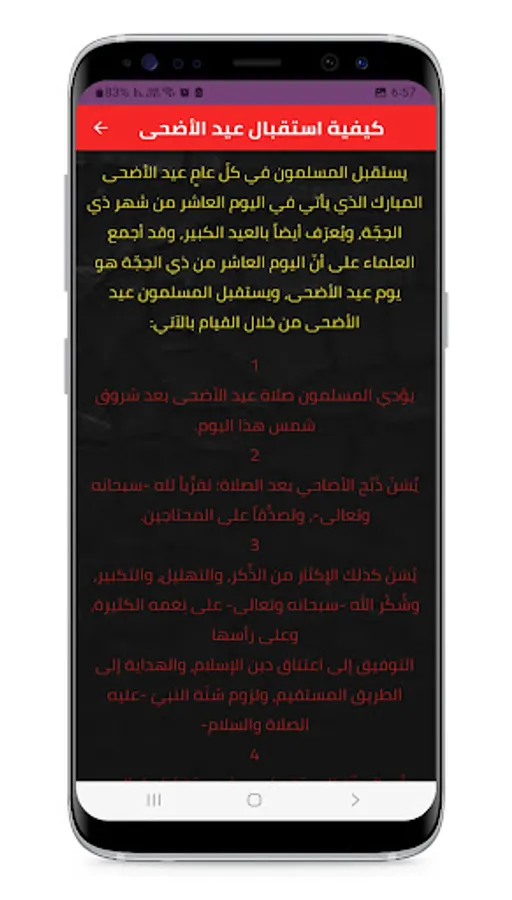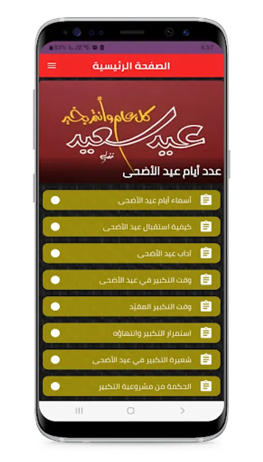 The application of the days of Eid al-Adha is an application that helps you know how much is left for Eid al-Adha and when it begins and ends, as well as provides you with information about the importance of this holiday, its rituals, its Sunnah and its virtues. Through this application, you can see the countdown to Eid al-Adha in days, hours, minutes and seconds, and get to know the date of Eid in the Hijri and Gregorian calendars for the coming years, and read about the story of the sacrifice of our master Ibrahim, peace be upon him, and his son Ismail, peace be upon him, and learn how to perform the Eid prayer, the sacrifice of the sacrifice and the takbeers Eid and Eid morals. Through this application, you can also share your congratulations and congratulations on the occasion of Eid Al-Adha with your friends and loved ones, and send them beautiful and touching cards. The Eid Al-Adha application is a free and easy-to-use application that works without an Internet connection and does not require special permissions. Download it now and get ready to welcome the best days of the year.