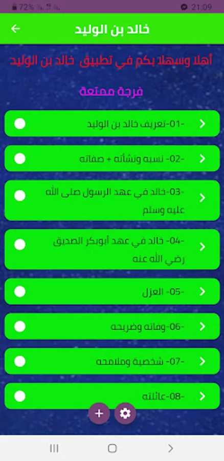 Welcome to my partners in the Khaled bin Al-Waleed application, this comprehensive and distinctive application, which includes the biography of the hero of a great companion, through which he shows his heroism, personality, and the conquests he fought in his life from his inception until his death, so download the application now without hesitation and share it with your family, friends and loved ones to benefit from This great personality, his leadership, and a fun time for everyone