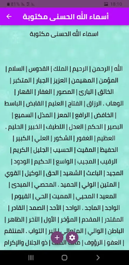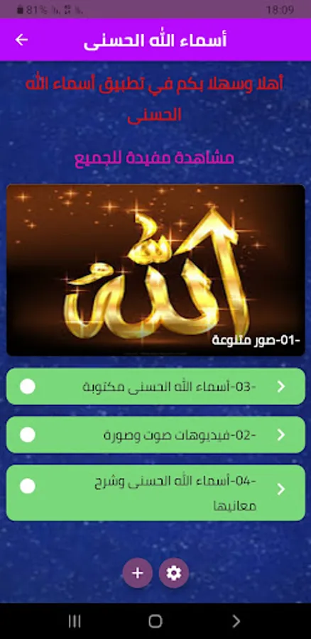 Welcome to all of you in the application of the Most Beautiful Names of God, this application through which you can learn about the venerable names of God and understand and contemplate their meanings through hearing and explaining them. The application now and share it with your friends, family and loved ones so that everyone benefits.