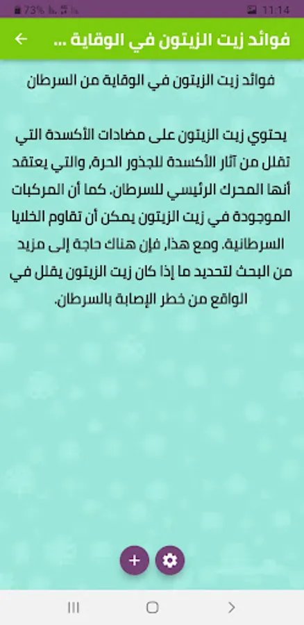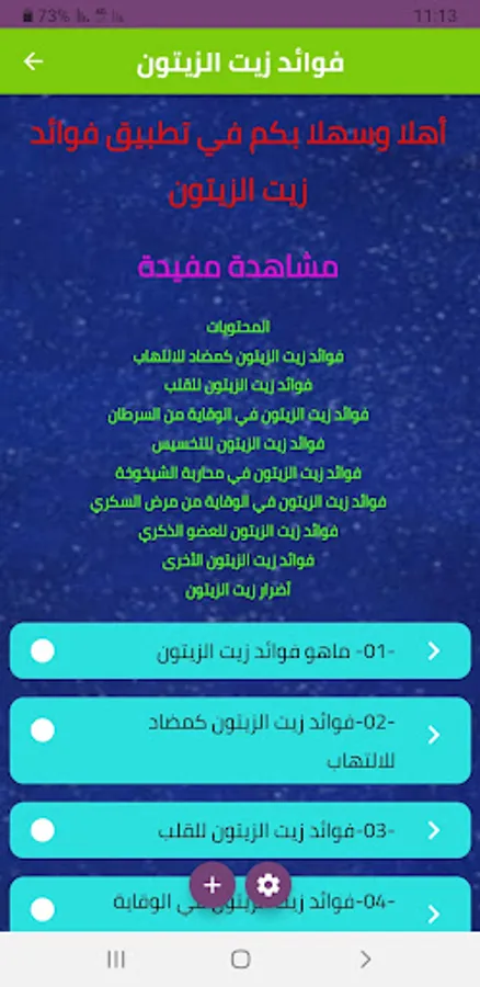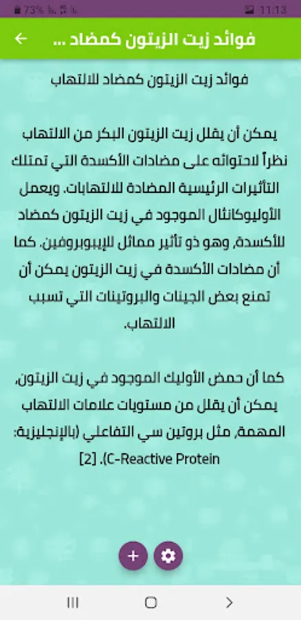 Welcome to all of you in the application of the benefits of olive oil, this comprehensive, useful and simple application through which you can learn the benefits of olive oil for inflammation and the prevention of serious diseases such as diabetes, cancer, heart and others, and it also has damages that you can know, so download the application now and do not hesitate and share it with family and friends And loved ones to take advantage.