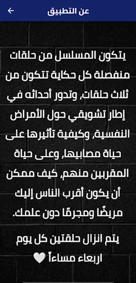 The series consists of separate episodes, each story consisting of three episodes, and its events revolve within a suspenseful framework about mental illnesses, and how they affect the lives of those afflicted with them, and on the lives of those close to them. How is it possible for the people closest to you to be sick and criminals without your knowledge?