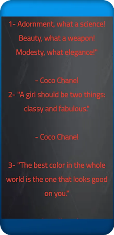 اليكم اجمل الاقوال والاحاديث ومجموعة صور عبارات ونصائح , , نقدمها لكم في تطبيق 25 coco Chanel quotes , most famous coco chanel quote، 25 coco chanel quotes about ، 25 coco chanel quotes and poems ، 25 coco chanel quotes about fashion 25 coco chanel quotes about love ، 25 coco chanel quotes about life , coco chanel.quotes , والكثير الكثير تجده داخل تطبيقنا بشكل نصوص وصور بدون الحاجه للاتصال بشبكة الانترنت , اذ يمكنك من نسخها وحفظها ومشاركتها مع اصدقائك وافراد عائلتك العزيزة , حمل تطبيق 25 coco Chanel quotes الآن , نتمنى لك استخدام ممتع