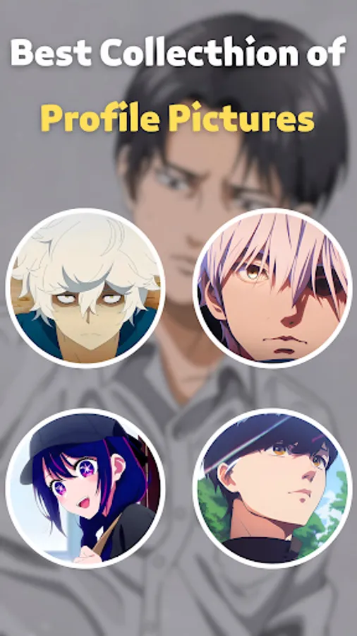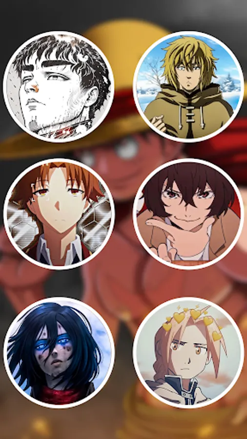 🔸 Provides profile pictures for many anime characters (Luffy, Goku, Vegeta; Zoro, Eren, Mikasa, sad anime pictures, Nami, Berserk, Dragon Ball, One Piece, Attack on Titan, Naruto, Sasuke, Itachi, Sakura, and many more characters The famous and the not-so-popular,...)