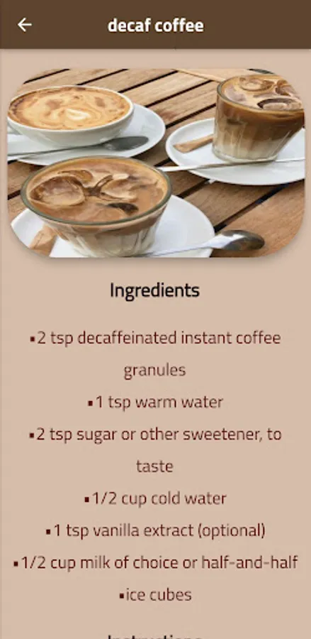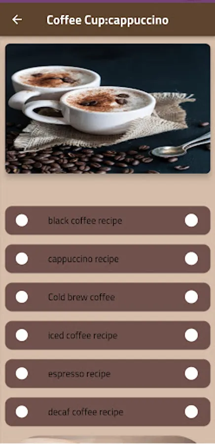 The application consists of : recipe cappuccino
