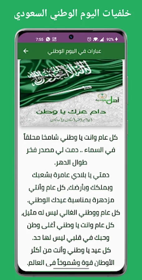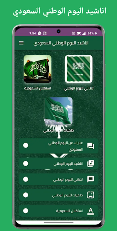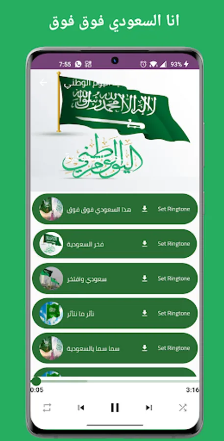 In the application of the songs of the 92nd Saudi National Day, we offer you a good experience in accessing the most important new and influential Saudi songs that everyone loved and admired among many of the 2021 songs, so that the application included a group of songs that were selected from a distinguished high-quality audio library in its recordings of the songs , the application provides many features for it where you can listen to the chant, share it and set it as a ringtone for your cell phone and enjoy it, do not hesitate to download the application of the 92 Saudi National Day songs, all you have to do is press the download button and enjoy the best possible experience on your device with us