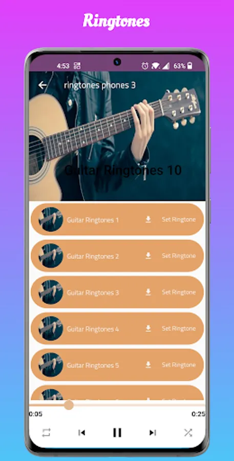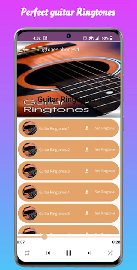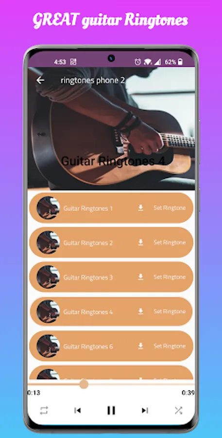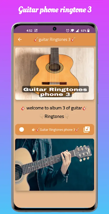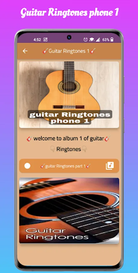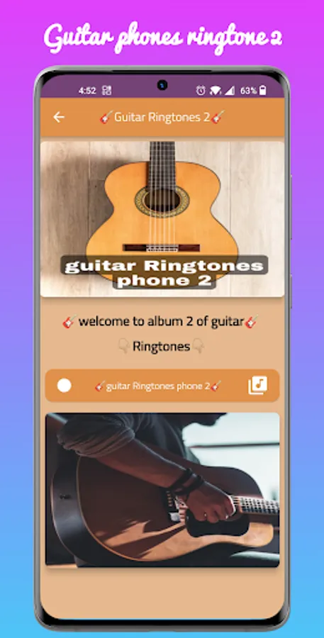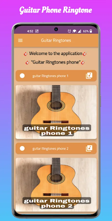 Guitar Phone Ringtone is an app offers you many guitar Ringtones and a lot of guitar music