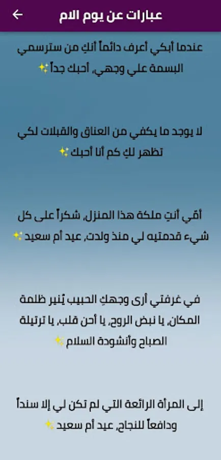 Our Prophet and our Master Muhammad, may God’s prayers and peace be upon him, recommended to us the mother, who said: “Your mother, then your mother, then your mother, then your father.” May God protect all of us with all our mothers, where we offer you a Mother's Day application: phrases about Mother's Day, so that you can enjoy with us the most beautiful and wonderful songs of the mother, with the most famous voices, Mother's Day songs 2021, six beloved songs, the songs of my mother and then my mother, and many varied songs of the mother, you can download the application Mother's Day: Expressions of Mother's Day by pressing the button for that, and you can also share the The application and the songs in it to your friends, your loved ones, your mother and members of your family, we wish you an enjoyable use.