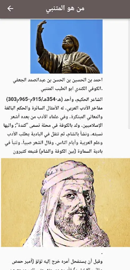 Te ofrecemos los more bellos versos poéticos classicos, coquetos y nabati, y otros tipos de poesía, en la aplicación al-Mutanabbi except all the cattle of al-Khaizli, which includes varios temas en el maestro, el amigo y el padre, y en describir la belleza de la mujer , that Tambien includes all of the more important ones, en lamentación, hilado, amor, alabanza al Profeta y llamando a Dios Todopoderoso Descarga la aplicación al-Mutanabbi except for all the cattle of the Khaizli, y disfruta with nosotros los versos poéticos more importantes and hermosos, in the poesia corta y many of the most famous Arab poets, including Al-Mutanabi, Antara Bin Shaddad, Murru Al-Qais and others