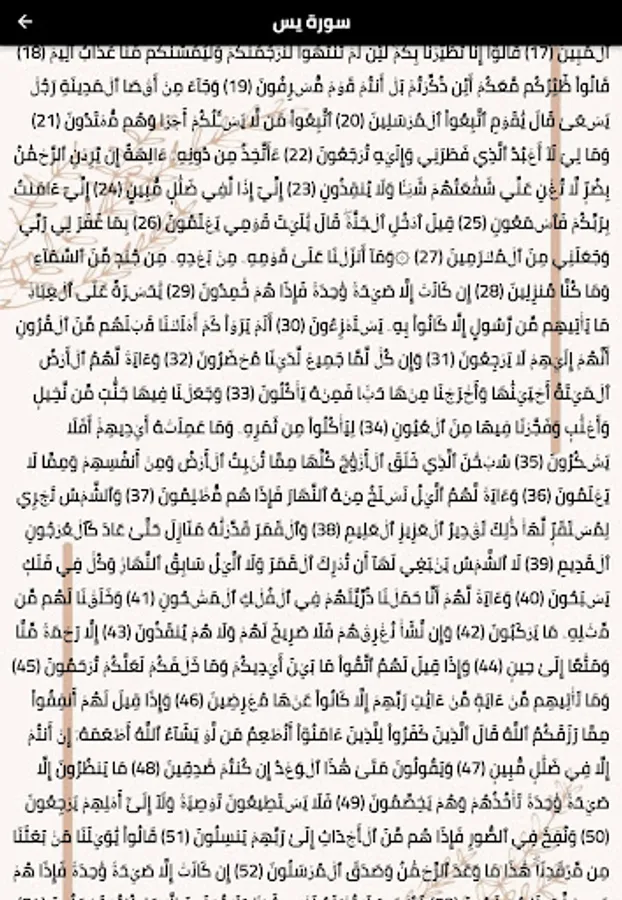 This application contains a complete Surah Yassin written in a beautiful and distinctive font that is easy to read