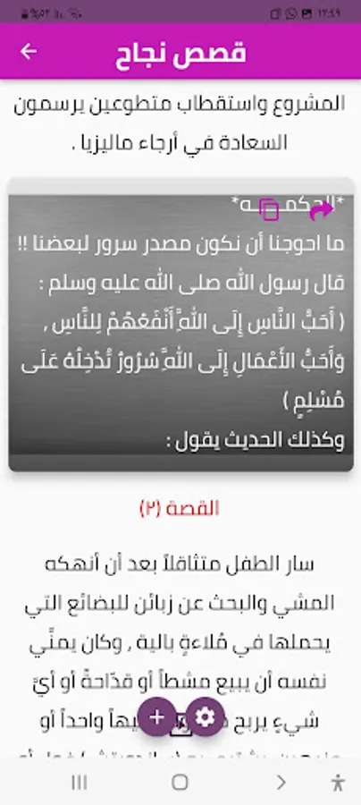 في تطبيق قصص وحكم ، يمكنك مشاركة حكم كل قصة مع أصدقائك.