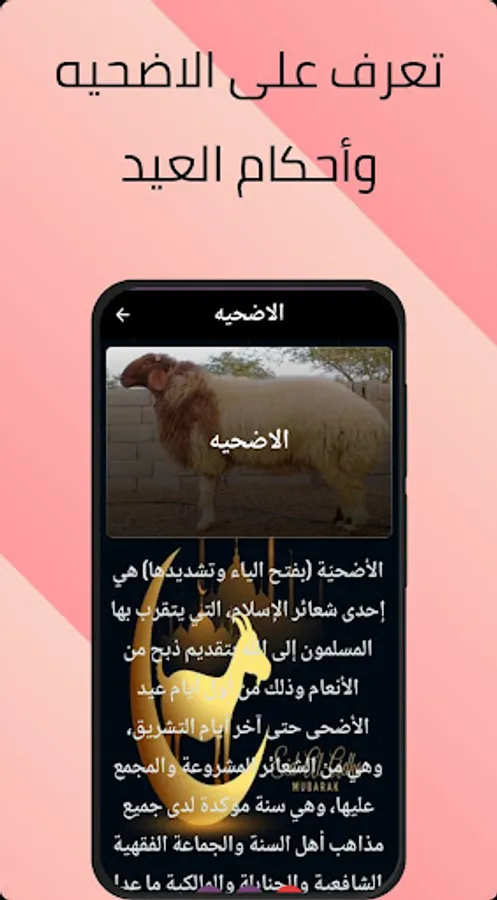 يحتوي تطبيق عيد الاضحى المبارك على: