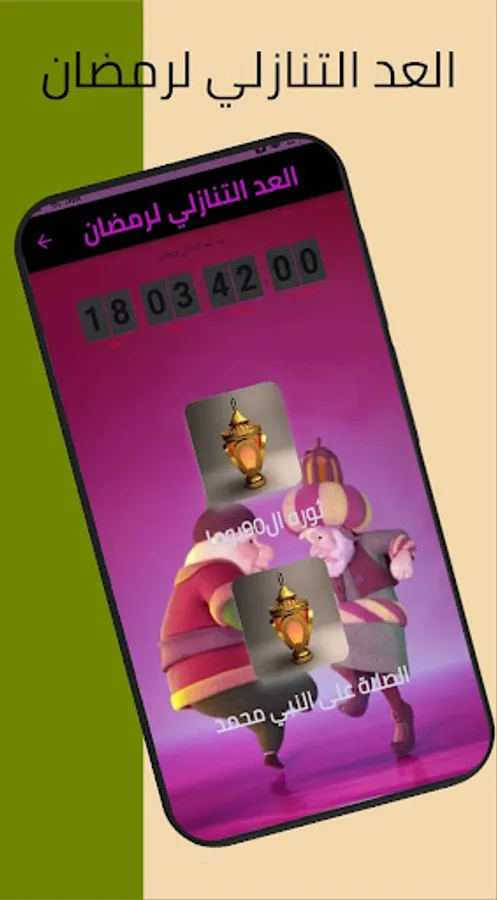 يحتوي تطبيق العد التنازلي لرمضان على: