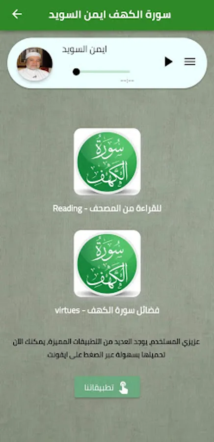 Download the Surat Al-Kahf Ayman Al-Suwaid application and listen to reading without the Internet exclusively on Google.