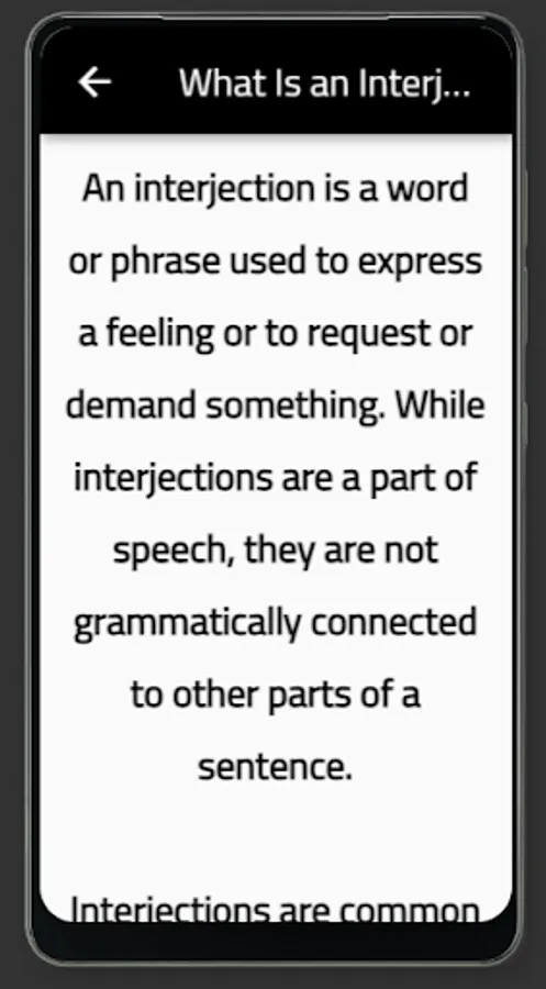 The app contains everything you need to know about interjection in english
