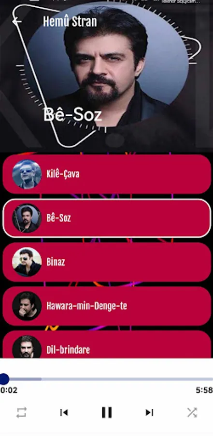 This application contains all the songs of singer and artist Karwan Kamil.