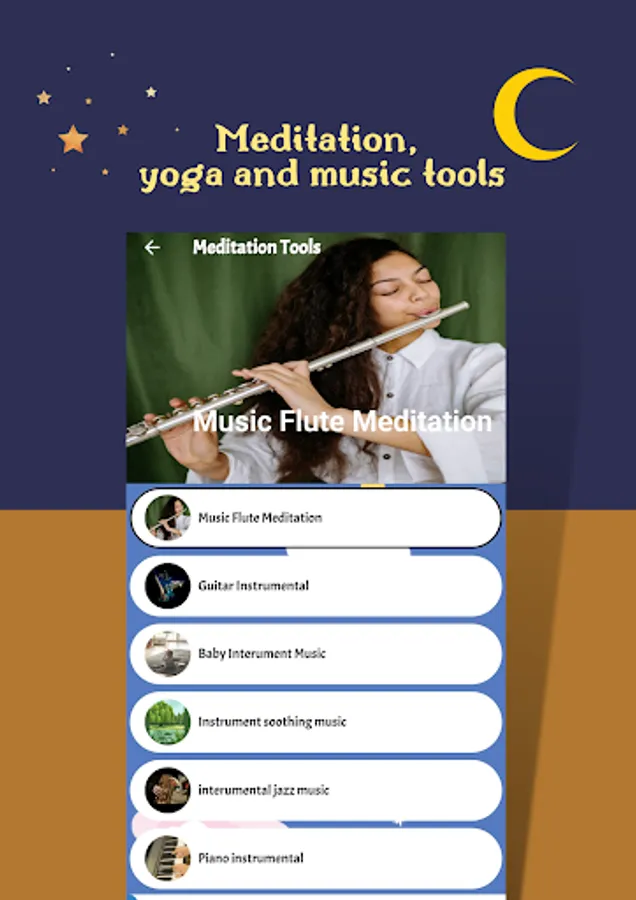 √ Meditation instruments such as :(piano, flute, guitar, jazz)